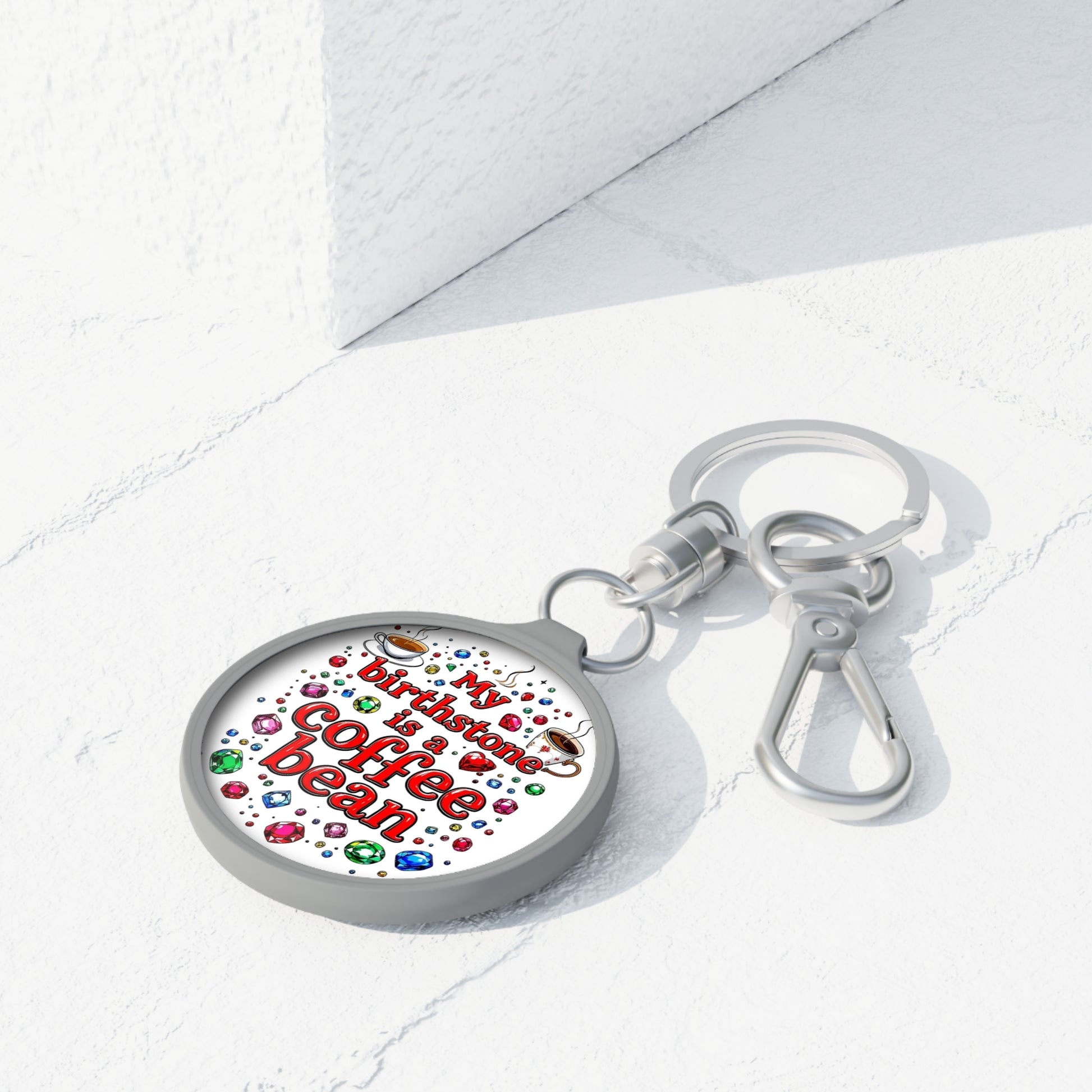 Coffee Bean Birthstone Keyring Tag